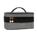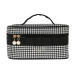 BEAUTY CASE M POULETTE Pensato per i trucchi ma anche per i gioielli, modello molto versatile, puoi usarlo anche per i medicamenti di primo soccorso, essendo molto adatto al viaggio. Il pied de poule è un classico senza tempo della sartoria, capace di rinnovarsi stagione dopo stagione senza perdere il suo fascino. Anche quest'inverno, questo pattern iconico torna protagonista, più romantico che mai. Abbiamo reinterpretato questo motivo classico stampandolo su pelle sintetica per creare una linea esclusiva di beauty case e pochette. Per aggiungere un tocco di romanticismo, ogni pezzo è impreziosito da un elegante fiocco nero in PU Saffiano, perfetto per chi ama uno stile raffinato e femminile.