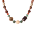 Intrigante ed originale collana corta dal design giovane e assolutamente chic, con serie di lucidissime pietre ed altri accattivanti elementi che creano un unicum di grande effetto. Un accessorio per essere sempre al centro dell'attenzione, nelle sue cromie dell'oro epidor, avorio, verde, corallo, blu. Con targhetta Sodini sull'estensione.