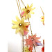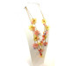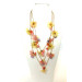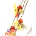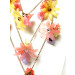collana lunga n maglia metallica dorata multifilo su più livelli arricchita con grappoli di fiori in resina gialli,rosa e lilla.