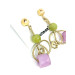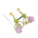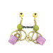 orecchino a perno dorato con cristallo ambrato ed intreccio metallico arricchito da inserti in resina lilla e verdi.