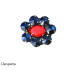 Spilla Cleopatra a forma di fiore blu rosso.