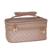 BEAUTY CASE M POLKA GLAM ROSA, molto capiente e comodo per il viaggio, con il suo manico diventa comodo da trasportare. Una linea sofisticata, realizzata in materiale tecnico effetto satin, impreziosito da una pioggia di delicati pois ton sur ton. Polka glam incarna perfettamente lo spirito romantico e femminile tipico di Camomilla Milano, con un tocco moderno che la rende versatile e contemporanea. Le pochette e i beauty case della collezione sono eleganti e funzionali, arricchiti da un raffinato fiocco che aggiunge un tocco di romanticismo. Una linea pensata per chi cerca praticità senza rinunciare allo stile, ideale per accompagnarti in ogni occasione con un'eleganza.