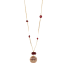 Una collana lunga speciale e pregiata che da a chi la indossa un tono sofisticato. Design luminosissimo con splendente sottile catena che incorpora alcune sfere sfaccettate impreziosita da accattivante pendente a due elementi dai riflessi inebrianti. Un accessorio perfetto per un look impegnato o per quando vuoi tu, in una versione dalle cromie del bordeaux e oro. Targhetta Sodini sullestensione.