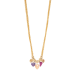Una sontuosa collana lunga per affermare il tuo mood dallo stile prezioso e affascinante. Design lineare ed equilibrato con splendente catena multifilo sulla quale al centro scorrono aurei anelli che sorreggono brillantissimi ciondoli dalle nuances accattivanti. Un accessorio perfetto in qualunque occasione, nelle sue cromie del beige, viola, fucsia e oro. Con targhetta Sodini.