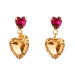 Un paio di ammalianti orecchini per stupire con dettagli di pregio e grande fascino. Design accattivante a due cuori, uno piccolo e luminoso che ne sorregge uno più grande e brillantissimo per un connubio che esprime nuances ipnotiche. Una coppia di accessori perfetti per quelle occasioni importanti o quando vuoi tu, nelle loro cromie del beige, fucsia e oro. Con targhetta Sodini sul pendente.