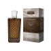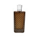La decorazione dai colori bruni e ambrati rievoca una mascolinità sofisticata racchiusa nella trama del flacone ulteriormente impreziosito da un tappo argentato inciso con la rosa dei venti.