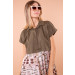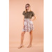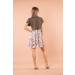 Abito corto fantasia Stones nella tonalità del cipria e verde militare.