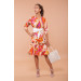 ABITO MIDI CON MANICHE A 3/4 FANTASIA IKAT FUXIA ARANCIO TG. L