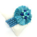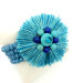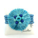bracciale elastico argentato multifilo di perle sfaccettate sui toni del turchese con fiore composto da fili e pietre centrali