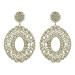Design con griglietta di mini cristalli al lobo e pendente ovale cavo tempestato di brillantissimi piccoli cristalli. Una coppia di accessori perfetti per quell'occasione importante o per quando vuoi tu, in una versione dai toni dell'oro e acquamarina opalescente.